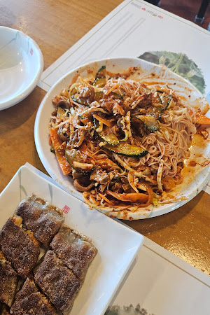 카운터 직원분이 정말 친절하셔서 주문부터 서빙까지 모든 과정이 매끄럽고 편안했습니다. 음식도 비교적 빨리 나오는 편이라 오래 기다리지 않아도 되었어요. 특히 도토리묵(7,000원)과 골뱅이소면(15,000원)도 맛있다고 하니 다음에는 꼭 먹어보려고 합니다. 주차는 가게 앞에 몇 대 정도 가능했던 것 같아요.