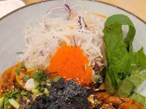 오늘은 뜨끈한 국물 대신 낙지덮밥을 주문했습니다. 매콤달콤한 양념에 탱글탱글한 낙지, 아삭한 채소가 어우러진 낙지덮밥은 생각보다 맛이 괜찮았습니다. 불맛이 살짝 감도는 낙지가 쫄깃하고 신선했고, 적당히 매콤한 양념 덕분에 밥 한 그릇을 뚝딱 비웠네요. 다만 가격은 일반 국수집 치고는 다소 높게 느껴졌습니다. (낙지덮밥 가격이 얼마인지 명시해주시면 더 좋을 것 같아요!)
