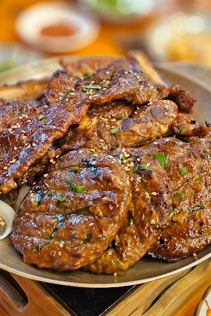 사실 갈비를 먹으러 들어왔지만, 더운 날씨 덕에 비빔냉면을 주문했습니다. 새콤달콤한 양념에 쫄깃한 면발, 그리고 푸짐하게 올라간 고명의 조화가 일품이었는데, 특히 아삭한 열무김치가 더해져 더욱 시원하고 개운한 맛을 즐길 수 있었습니다. 냉면 가격은 1만원 초반대로, 푸짐한 양과 맛을 고려하면 가성비도 훌륭했습니다. 갈비는 다음 방문 때 꼭 먹어보기로 다짐했습니다.