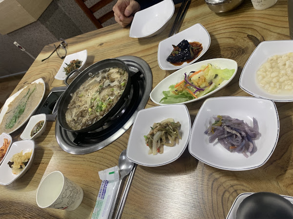이 가게의 대표 메뉴는 오리불고기입니다. 부담스러운 청국장 향이 아닌 깊은 맛이 특징인데, 청국장을 제육 볶음에 곁들여 새로운 차원의 풍미를 선사합니다. 제육은 약간 퍽퍽한 질감이지만, 이보다 중요한 것은 맛입니다. 반찬도 다양하고 훌륭하여 메밀전, 소고기 전골, 깔끔한 반찬을 신선한 맛으로 즐길 수 있습니다.