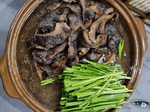 살구나무집의 대표 메뉴는 단연 능이버섯 백숙입니다. 큼지막한 능이버섯이 통째로 들어가 진한 국물 맛이 일품인데, 다른 곳에서는 잘게 썰어 나오는 것과 달리 모양 그대로 듬뿍 들어가 있어서 더욱 만족스러웠어요. 닭도 큼직한 한 마리 반이 나와 5인 가족이 먹어도 충분할 정도로 푸짐했고, 약 5만원 정도의 가격이 전혀 아깝지 않았습니다. 신선한 재료와 정성스러운 조리가 더해져 진하고 깊은 맛을 느낄 수 있었고, 국물도 한 번 리필이 가능해서 정말 배부르게 먹을 수 있었어요.