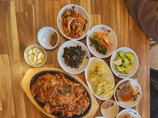 이 가게를 특별하게 만드는 것은 우렁이뿐만 아니라 다양하고 맛있는 반찬들입니다. 갓 절인 무와 당근, 고추, 양파를 비롯해 갖가지 쌈 채소가 테이블 위에 가득 이어집니다. 콩나물불고기와 함께 싸서 먹으면 각재가 더해져 맛이 더욱 돋보입니다. 주변에 선운사가 위치해 있으니 식사 후 한적한 경치를 구경하며 산책을 즐기는 것도 좋습니다.