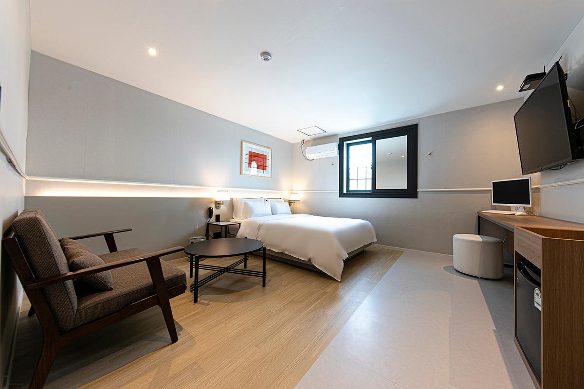 객실은 넓고 깨끗하며 현대적인 디자인이 돋보였습니다. 큰 창문을 통해 안동시의 멋진 전망을 감상할 수 있었습니다. 침상은 편안했고, 침구는 고급스러웠습니다. 어메니티도 충분히 제공되었고 품질이 뛰어났습니다. 무료 Wi-Fi와 평면 TV와 같은 편의시설도 모두 완벽하게 작동했습니다.