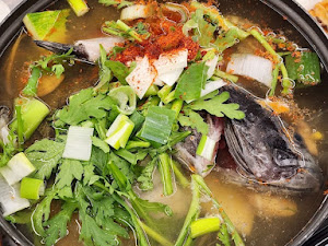 이곳의 대표 메뉴인 조개구이는 싱싱한 조개들이 가득 담겨 나왔어요. 큼지막한 키조개, 가리비, 백합 등 다양한 조개들을 숯불에 직접 구워 먹으니 바다 향이 입안 가득 퍼졌어요. 특히 활어회처럼 쫀득한 식감의 활어회는 정말 신선하고 맛있었어요. 가격은 조개구이 (대) 기준 6만원 정도였는데, 푸짐한 양과 신선한 재료를 생각하면 가성비도 좋았습니다. 매운탕은 꼭 추가해야 하는 메뉴! 깊고 진한 국물 맛이 일품이었어요. (단, 식초를 잘못 사용하신 건지 회 몇 점에서 식초 맛이 강하게 나서 아쉬웠어요.)