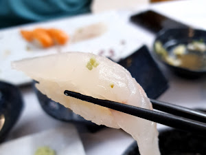 이곳의 하이라이트는 단연 연어초밥입니다. 두툼하게 썰린 연어는 씹는 맛이 일품이었고, 신선함이 그대로 느껴졌어요. 밥알의 적당한 찰기와 은은한 단맛이 연어의 풍미를 더욱 돋보이게 해주었죠. 가격은 1만원 중반대로 예상되는데, 연어의 퀄리티와 양을 생각하면 충분히 만족스러운 가격이었습니다. 메뉴판에는 우동 종류도 다양하게 있었지만, 다음 방문에는 다른 초밥 메뉴도 꼭 맛보고 싶어요.