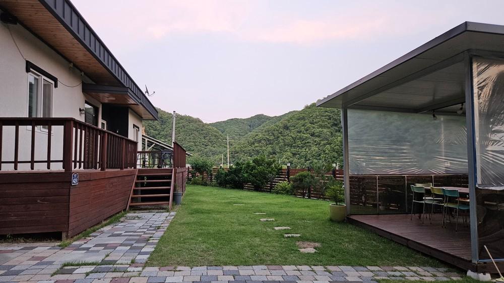 객실 내부는 모던하면서도 자연친화적인 인테리어로 꾸며져 있었고, 넓은 창을 통해 들어오는 햇살이 따스하고 포근한 분위기를 더했습니다. 쾌적하고 깔끔한 객실은 물론이고, 편안한 침구와 고급스러운 어메니티까지 모든 것이 완벽했습니다. 특히 테라스에서 바라보는 푸른 산의 풍경은 마음까지 정화되는 듯한 기분을 선사했습니다. 개별 바베큐 시설도 있어 저녁에는 가족들과 맛있는 바베큐 파티를 즐길 수 있었습니다.